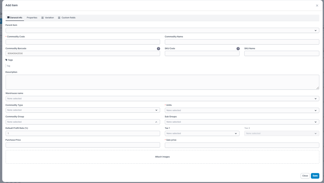 Commodity group - Select the commodity group of the item it belongs to from the dropdown.