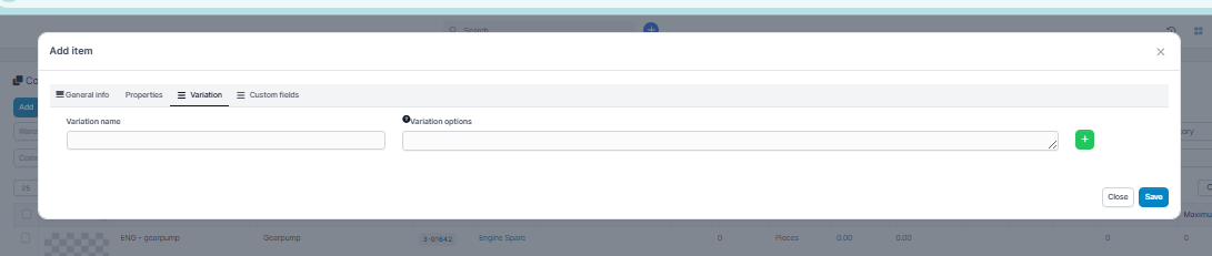 Step 2 : In add item page , add all the details of the items, then go to variations and add the variations if available, then click on save