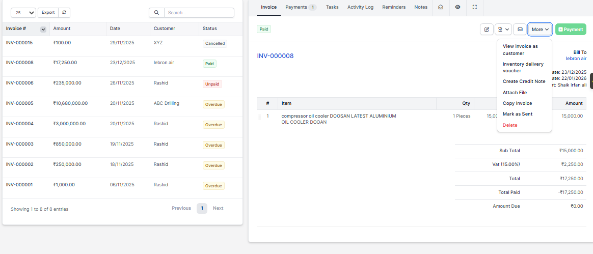 After adding all the details , click on black tick mark to add the item, and then click on save.